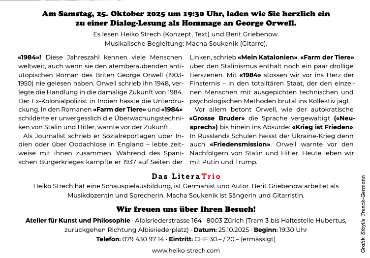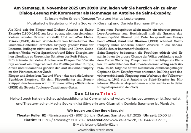 »Kartini hatte gerade ihre Zirkusnummer beendet, saß auf dem Trapezstuhl am Esstisch und putzte sich. Abendessen fertig. Herr Frisch sah die Noten der Triosonate durch, die er (Geige) mit Nico (Cello) und Frau Frisch (Klavier) einüben wollte.«